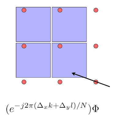 For example, the misalignment can be compensated: the WFS grid and the DM actuators may be misaligned by shifts along x or y dimensions. If the amount is known, shift slope estimate by a fraction of an actuator spacing such as $(exp[-i 2\pi (\Delta_x k + \Delta_y l)/ N])\Phi$.